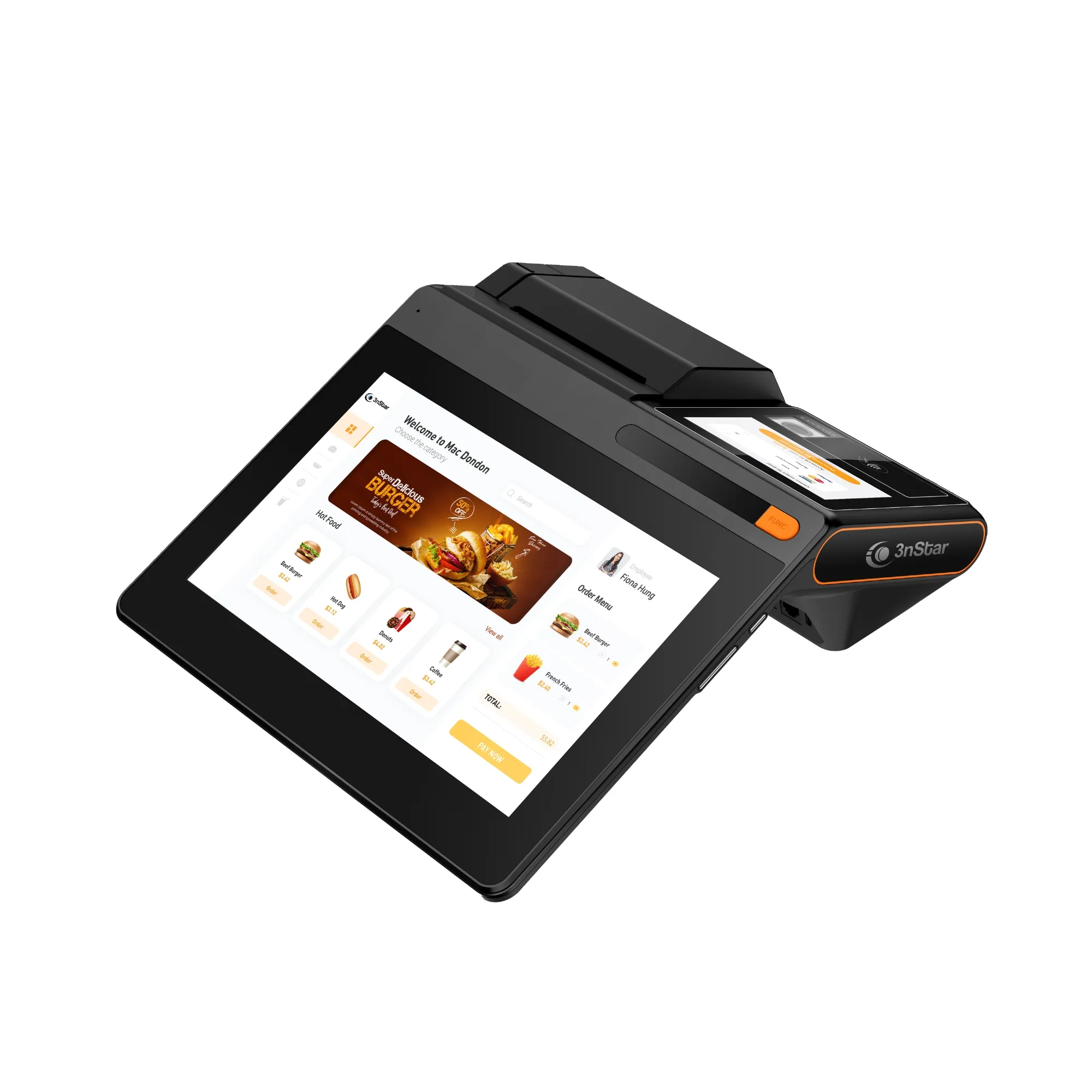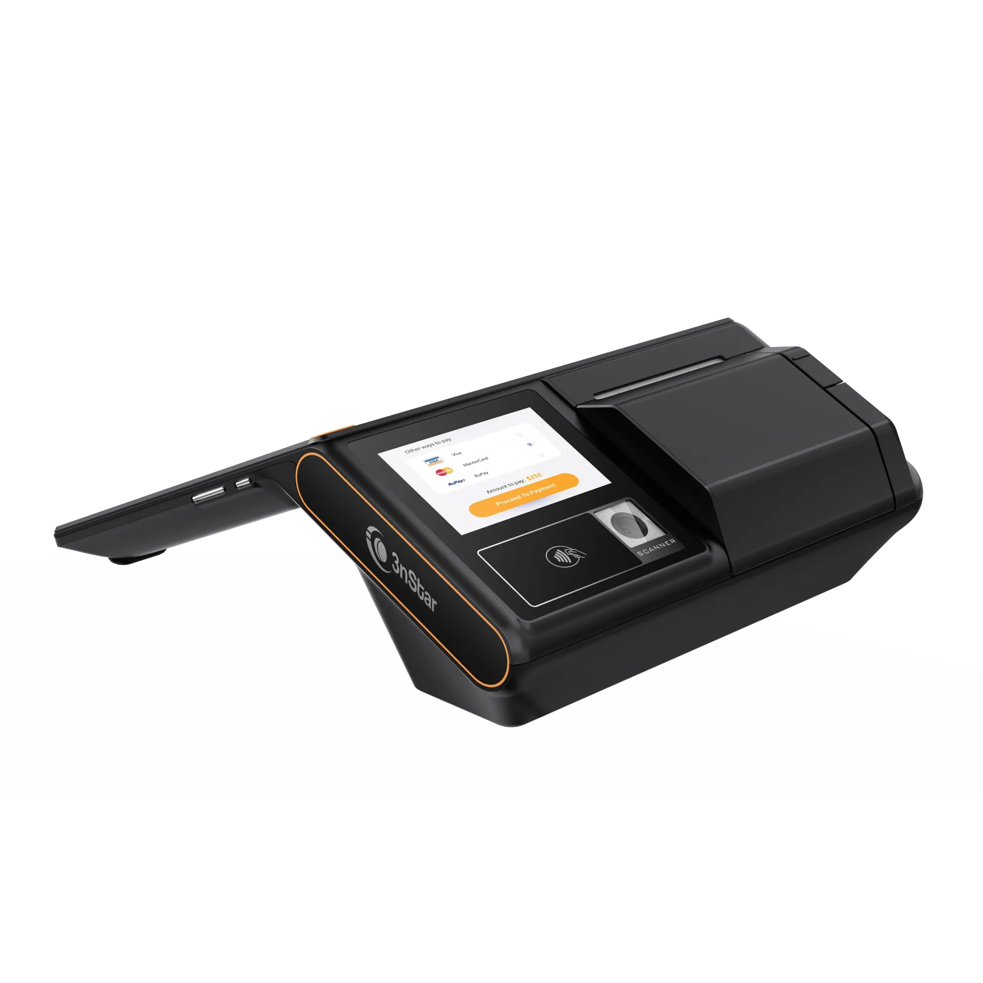 Terminal POS Android 3nStar PTA0140‑464 con pantalla táctil de 10″, impresora térmica de 80 mm, cámara 5 MP, conectividad 4G/Wi-Fi, doble pantalla y múltiples puertos. Ideal para comercios que necesitan movilidad, eficiencia y compatibilidad con boleta electrónica..